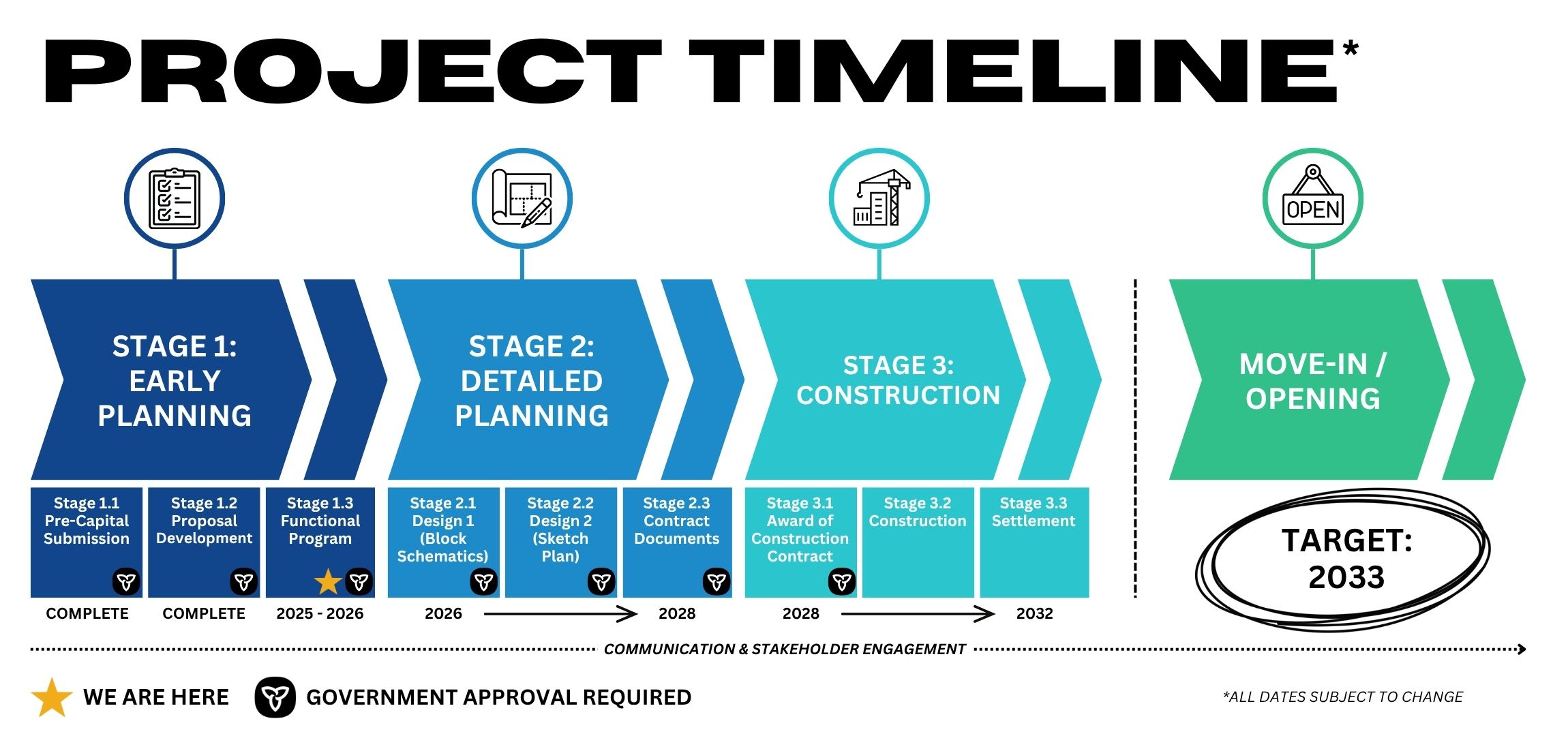 We are currently in the Functional Program stage of planning, supported by a $2.5 million provincial planning grant. This phase will define the services and space requirements for the new hospital and set the stage for design and construction.Â